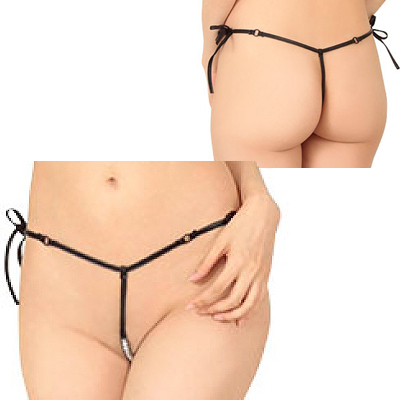 商品番号:b28067 露出系エナメル12連パールひもパン ブラック