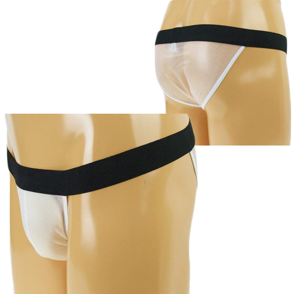 太めの黒ゴムと透け感のある生地で逞しさを演出する日本製フルバック(白)。透け素材を使っているため通気性があり夏場も快適にお使いいただけます♪