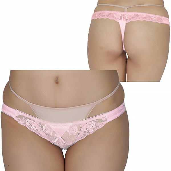 商品番号:b28283 光沢柔らかポケット付きレースTバック ピンク