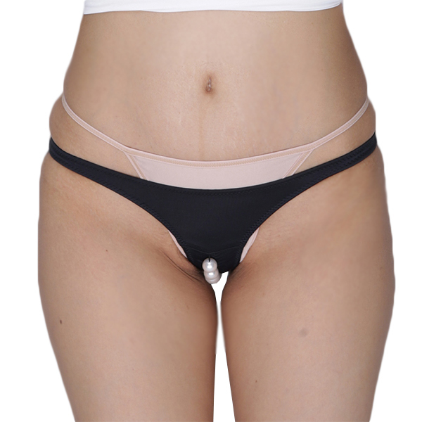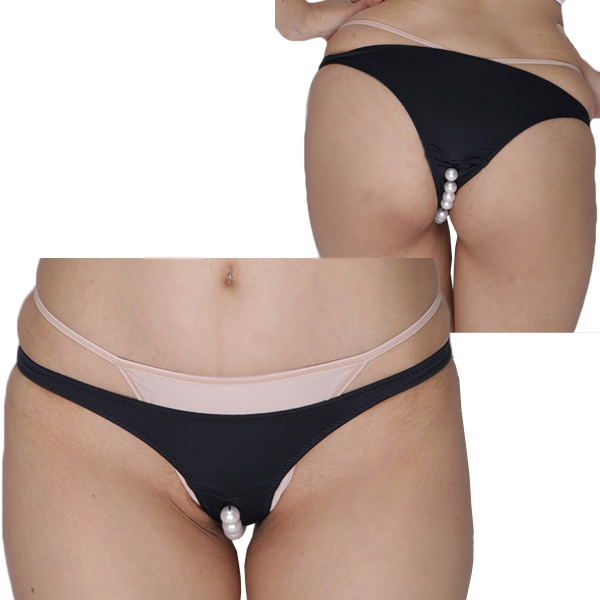 シンプルな黒ショーツのクロッチ部分に大玉パールを付けた刺激的な日本製ハーフバック。生地の食い込み加工&パールが生み出す快感!一人で楽しむも良しカップルのナイトプレイに用いても◎