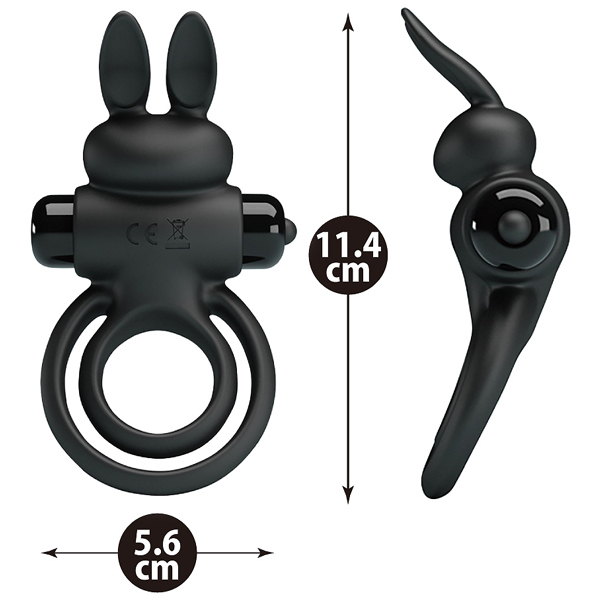 大小2つのリングで締め付け男の夜をロングサポート!振動機能付きシリコン製ペニスリング。メディカルグレードシリコンの柔らかリングが根元からギュッと締め付け!敏感なムスコの持続力UPとともに、超強力モーターを搭載したウサギ型のヘッドが10パターンの振動でパートナーを刺激する♪生活防水&静音設計、電池式(単4電池×1本使用)