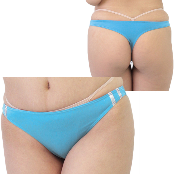 鮮やかなブルーが可愛い♪伸縮性抜群のストレッチ生地を使用した日本製ブルマ風Tバック(青)。ブルマと言えばやはりお尻が強調されるデザインが特徴ですが、それを更に強調したのがコチラのTバック!2本の白ラインが懐かしのブルマを想起させ、ブルマ好きなら思わず普段着でも取り入れたくなる一枚です。