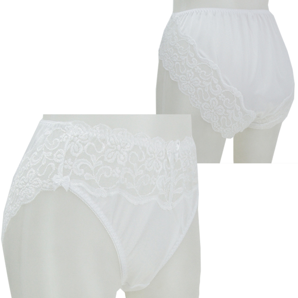 商品番号:b28464 光沢柔らかレース付きフルバック ホワイト LL