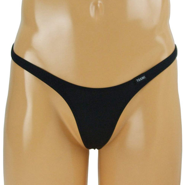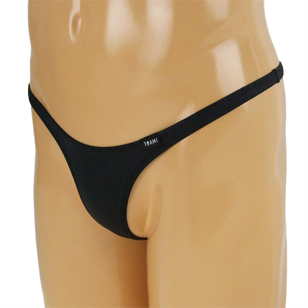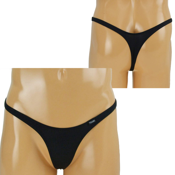 シンプルだけど大胆に魅せる!伸縮性の高い2wayストレッチ生地の男性用Tバック(黒)。見えるか見えないか、ギリギリまで露出する前後T字のハイレグデザインに胸が高まる♪タイトにフィットするので、身体をセクシーにアピールしたいという時にうってつけの一枚です。縫製の丁寧な日本製