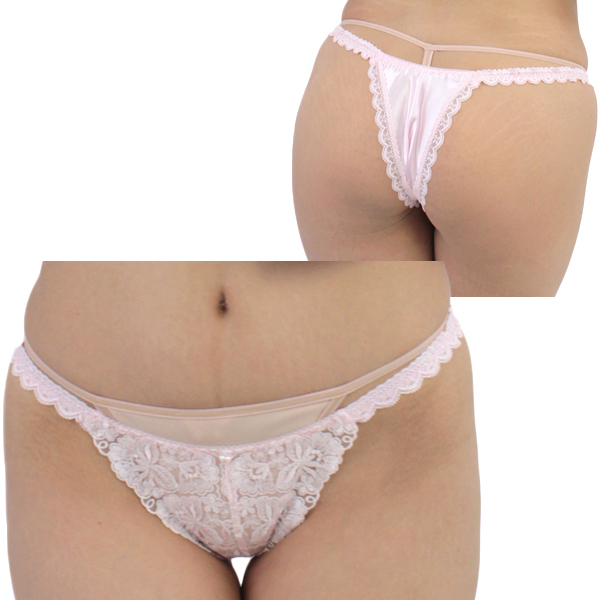 商品番号:b28611 光沢ストレッチレース刺繍ハーフバック (ピンク)