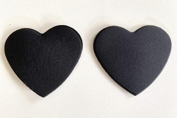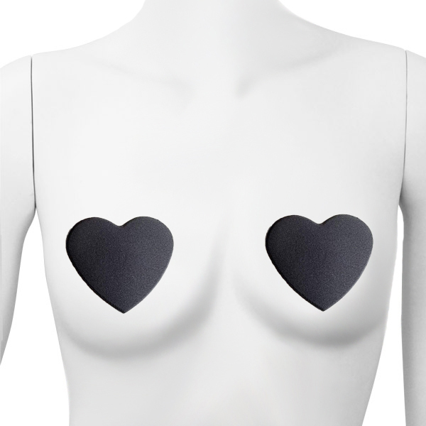 バストトップをお洒落に飾るシンプル無地のハート型ニップレス(黒)。少し厚みのあるクッション生地が胸元を立体的に彩る♪乳首に触れる部分は粘着しない素材を使用!肌に優しい2枚組のニップルシール。