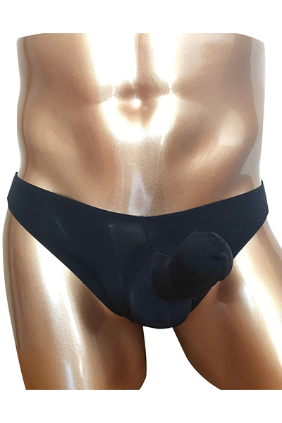 サオを収納できるポケットが付いた穿き心地の良いメンズ用ショーツ(黒)。肌触り柔らかく伸縮性の高い生地が下半身にフィット!アソコを一際際立たせるセクシーな男性用パンツ。優しく手洗い、またはネットに入れて洗濯してください