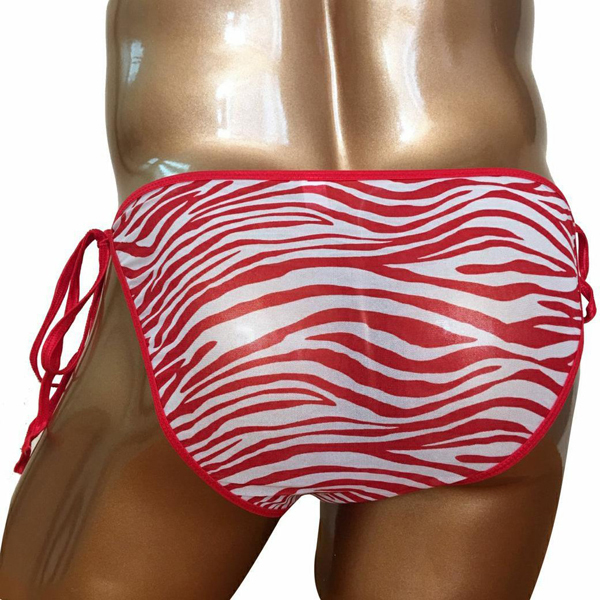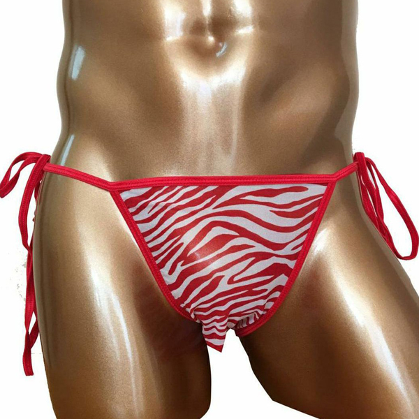 ワイルドなゼブラ柄と情熱的な赤でセクシーに魅せるメンズ用紐パンツ(レッド)!洗濯する際は網ネットに入れるか、優しく手洗いで洗濯するようお願いいたします