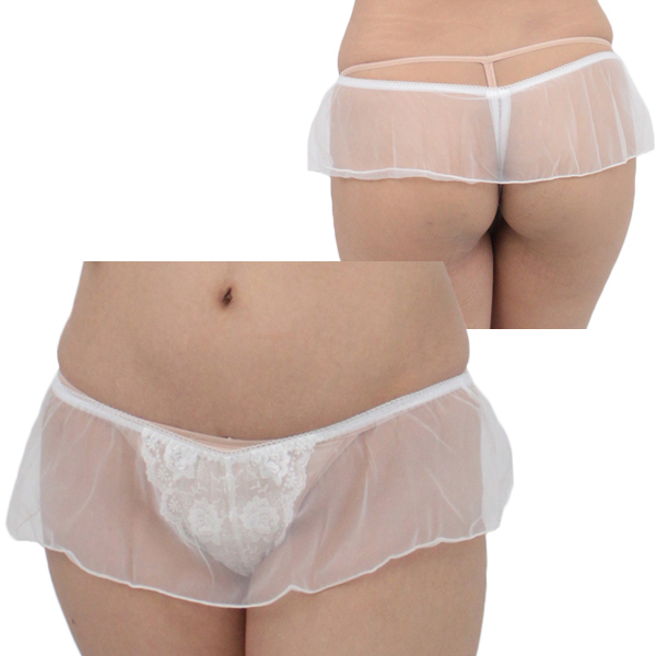 商品番号:b28693 レディス シースルースカート付きレース刺繍Tバック ホワイト