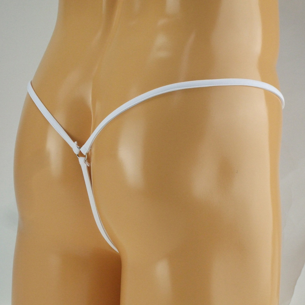 開放的な紐下着で大胆に誘惑!男の象徴を飾るセクシーな日本製Gストリング(白)。2wayストレッチ素材を使用