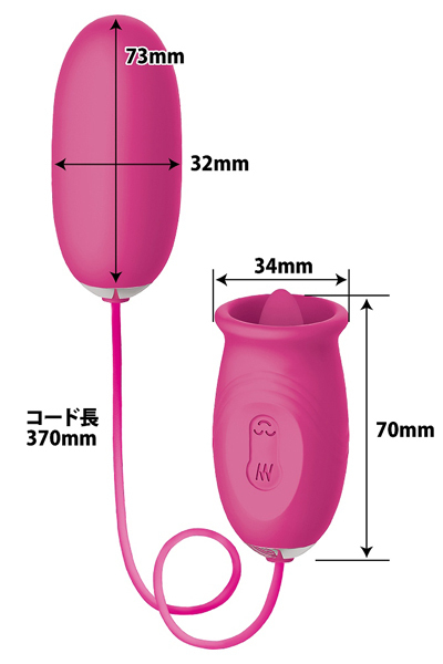 パッケージ:20.4×9.7×5.7cm 舌ローター(7.0×3.4cm)・振動ローター(7.3×3.2cm)・コード長37.0cm USB充電式
