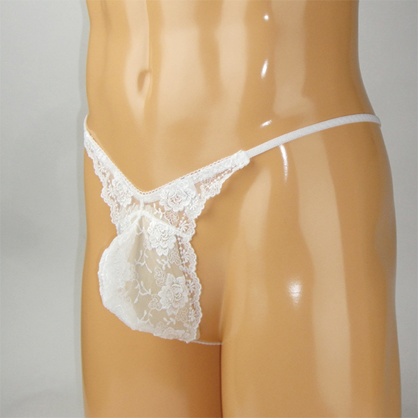 商品番号:b29298 メンズ スケスケシースルーレース付き脇細Gスト ホワイト M