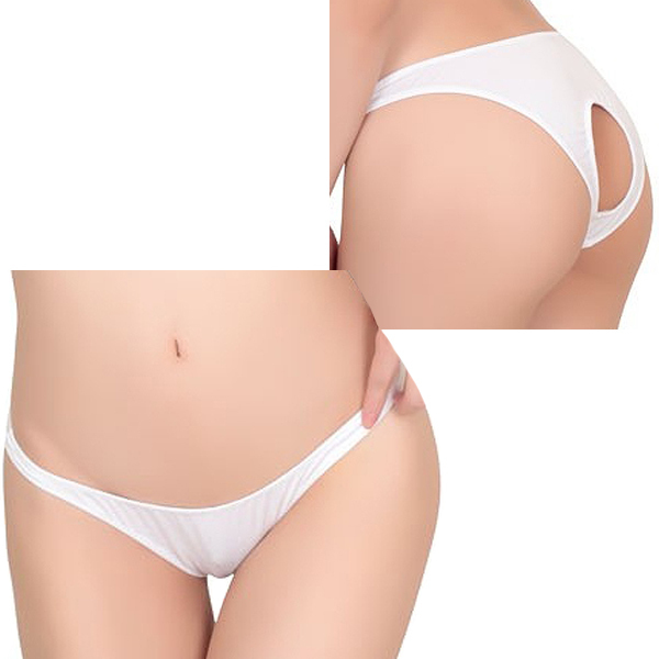ボトムスに響きにくいローライズ仕様のレディース用Oバック(白)。清潔感のあるシンプル無地タイプ