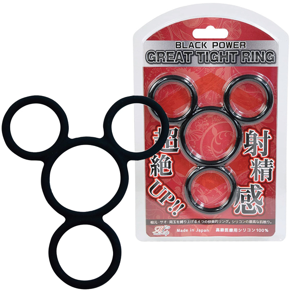 4点同時の締め付けによりこれまでに無い射精感も実現した男性用補助グッツ『グレートタイトリング』!医療用シリコンを100%採用しているので安心してお使い頂けます。使い方は、いたって簡単!サオとサオの根元部分と玉袋の根元を別々に、それぞれ2点ずつの計4点をリングに通して縛り上げる事で勃起力と持続力アップに期待でき、根元に装着する事で中折れも防止出来ます。締め付けも強く4点同時の攻めが出来るコックリングはいかがでしょうか!
