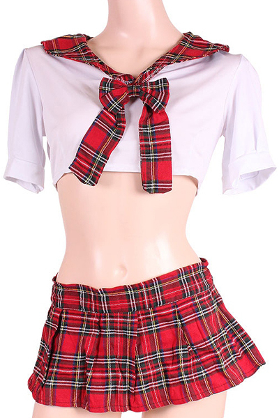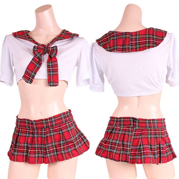赤色タータンが可愛すぎ!アイドル風デザインのセーラー服セット。超ミニ丈のプリーツスカートと爽やかな白の半袖トップスを、赤のチェック柄でキュートにデコレーション♪大人の魅力とフェミニンな雰囲気を同時に醸し出す可愛いセーラー服コスプレです。※こちらの商品は受注発注商品の為、ご注文から発送までに3、4営業日掛かる場合が御座います。