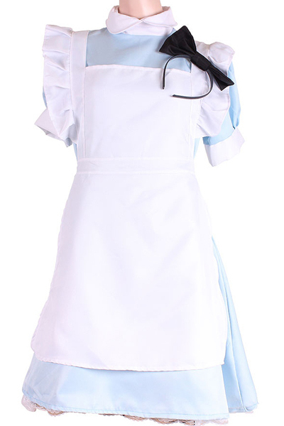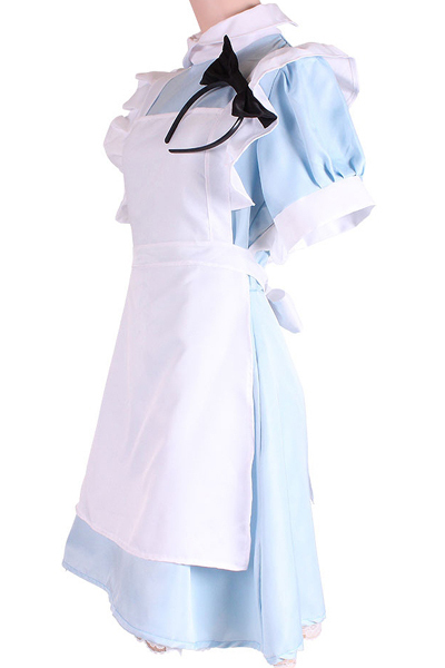 水色×白の透明感のある爽やかなカラーリングが好印象な可愛いメイド服コスプレ。黒のリボンカチューシャを装着すれば、おとぎ話のヒロインにもなれちゃいます♪※こちらの商品は受注発注商品の為、ご注文から発送までに3、4営業日掛かる場合が御座います。
