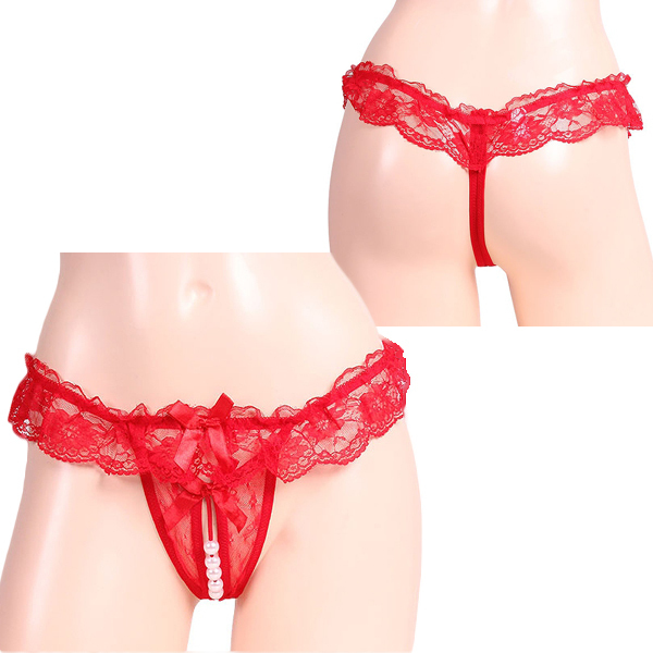 商品番号:b29944 キュンキュンうずく大粒パールオープンショーツ レッド