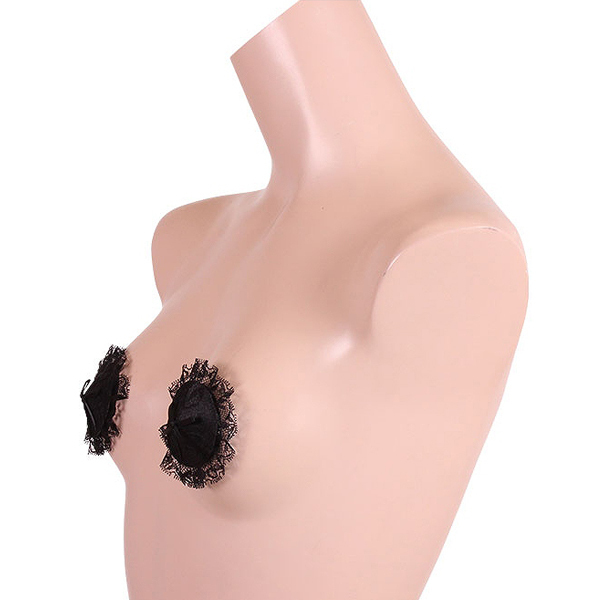 レースデザインでバストトップをエレガントに飾る黒の女性用ニップレス。※こちらの商品は受注発注商品の為、ご注文から発送までに3、4営業日掛かる場合が御座います。