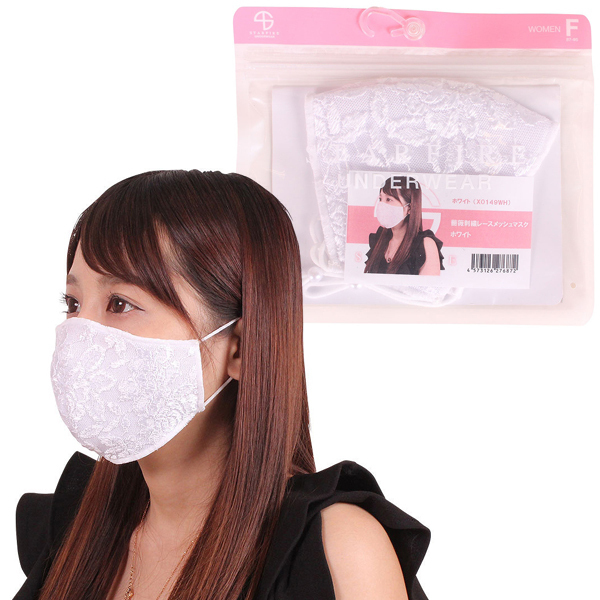 商品番号:b30128 薔薇刺繍レースメッシュマスク ホワイト