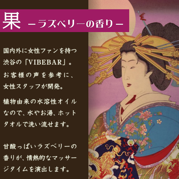 甘酸っぱいラズベリー香る、植物由来の匂い付き水溶性マッサージオイル170ml。シリコンやポリアクリル酸Naフリーで、グッズを傷めずお部屋を汚すこと無し♪使用後はホットタオルでサッと拭き取るか、水またはお湯で洗い流すだけと後処理も簡単!お洒落な波型ポンプボトル入りで取り出し楽々♪極上のリラックスタイムを演出する日本製のナチュラルオイルを是非どうぞ!
