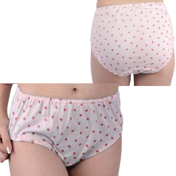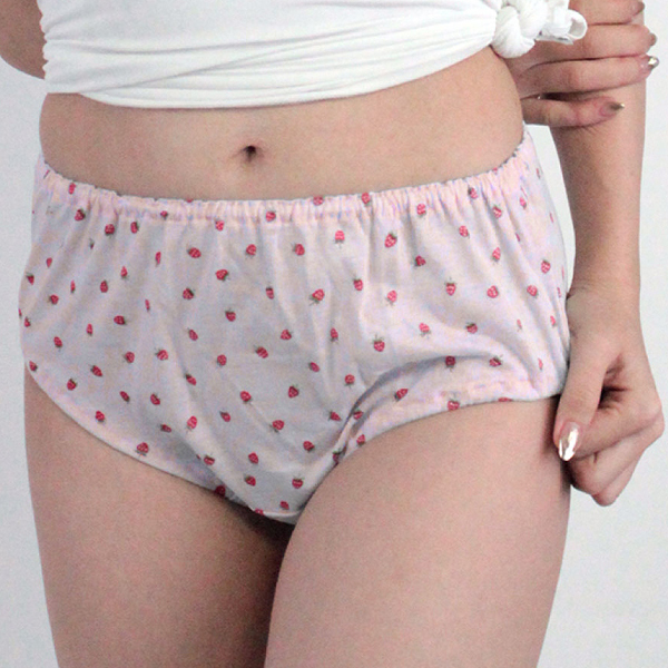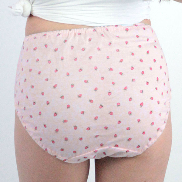 イチゴ柄の全面プリントが愛らしい女性用ランジェリー。お肌に優しいコットン製でお尻全体を優しく包んでくれる可愛いらしさ満点の深履きショーツ。◎ピンク、Mサイズ