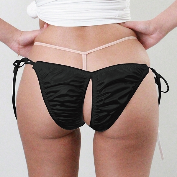 商品番号:b30437 光沢が有り肌触りの良い生地にレース付き脇ヒモ股ワレFB Lサイズ ブラック