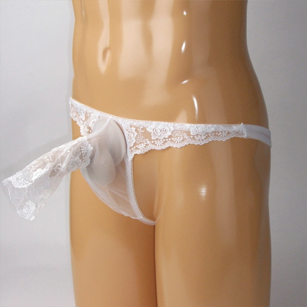 > メンズ スケスケシースルー素材のセクシーな生地にレース付きぞうさん貫通型TB ホワイト