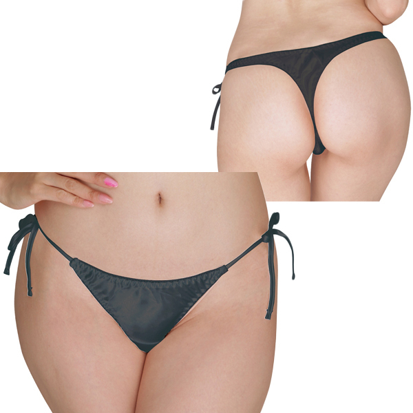 商品番号:b30600 光沢サテン脇紐Tバック Lサイズ ブラック