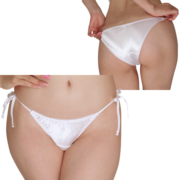 > 光沢サテン脇紐フルバック Lサイズ ホワイト