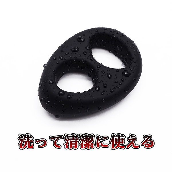 タマタマとサオの2点を同時に締め付けられる2穴タイプのコックリング!射精力と勃起力アップを狙えるのがダブルの特徴で、厚みがある幅広タイプなのでしっかりとした締めつけ感になってます!素材にはウォーターシリコンを採用しており、普通のシリコンよりも柔らかで、握るとムニムニっとした感触が強めですが、幅広サイズなので締めつけ感はしっかりしてます。