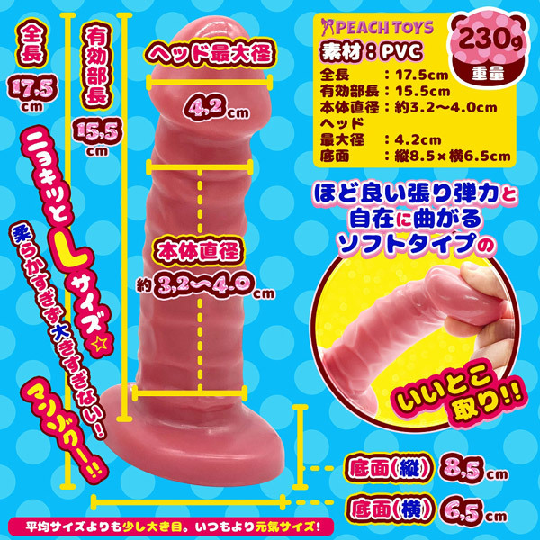 柔らかいのに弾力感たっぷり♪ソフト素材のピンクカラーディルド!「ニョッキノコ(ソフトピンク)L」ニョキッとLサイズのディルドが登場です。●使用後に立てて置ける土台つき。●柔らかいのに弾力感たっぷり♪のソフト素材。●ほど良い張り弾力と自在に曲がるソフトタイプのいいとこ取り。●硬くない!コシが有るソフト素材がイイ感じ。●素材:PVC。●MADE IN JAPAN