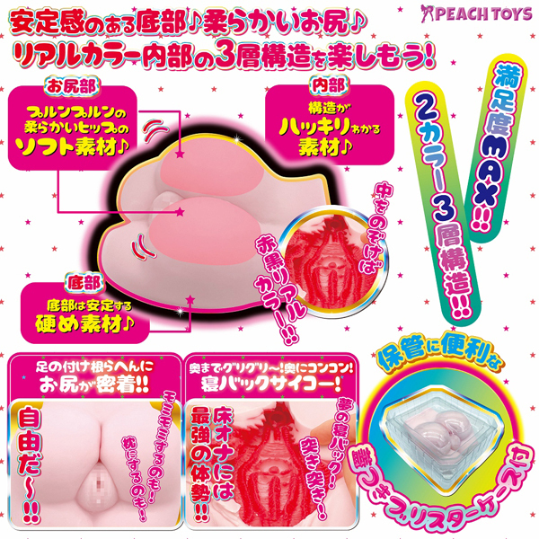 <非貫通/ローション付>「床オナ式名器」第10弾!床オナには最強の「寝バックスタイル」床オナ式名器-ひっぷるん-の登場です。お尻部分(でん部)だけが柔らかく、下部は床オナに最適なハード系素材。内部は赤黒のリアル系カラーの3層構造が特徴です。