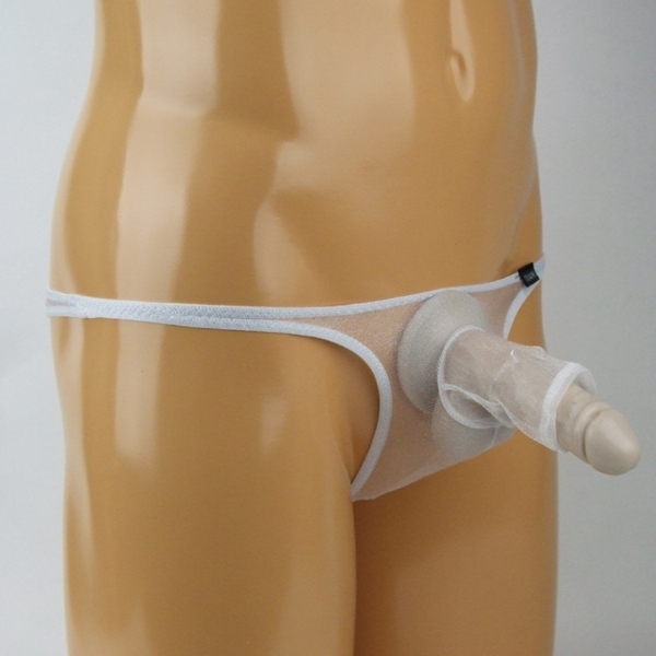 商品番号:b32098 メンズ キラキラスケスケ生地ゾウさんイボイボリング付きTバック (ホワイト)