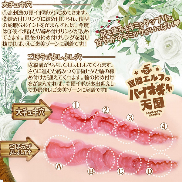 官能エルフに母性を感じて赤ちゃんのようにとことん甘ちゃう!?バブみ全開オナホール!高刺激硬イボ+締め付けリング内蔵の「大チュキ穴」と、横ひだが優しくこすりつけてくる「ごほうびよしよし穴」の2穴仕様!非貫通/ローション付