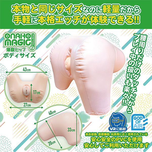 空気を注入することでリアルサイズの爆裂ヒップが完成する「オナホマジックPISTON2爆裂ヒップ」。ホールを入れるポケットはビッグサイズのオナホでもセットできる余裕のある大きさです!大小オナホの2本差しもできるヒップ型のオナホ固定具♪完成形は四つん這いで突き出したヒップだから悩ましい!これさえあれば正常位から後背位に騎乗位、駅弁や対面座位も楽しめるフォルムとなっています。各社様々なオナホールに対応できるので、大小2つのオナホをセットして異なる挿入感を楽しむのも良いですね♪