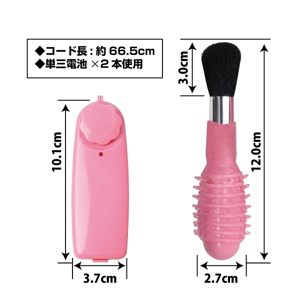 刷毛で焦らしながらローターでイカせる!気分を高揚させたいときやいつもと違う雰囲気で楽しみたいときにはコレ!刷毛による絶妙な感触が楽しめるローターです♪強力モーターを内蔵していてパートナーの体を撫でるだけでも楽しめますし、ローターの表面にはイボヒダ加工が施されているので当てたり挿れたりしても楽しめます!電源は単3電池2本で動くタイプでコードで繋がったコントローラーにセットする仕様です。強弱はダイヤル式で簡単に操作できます♪
