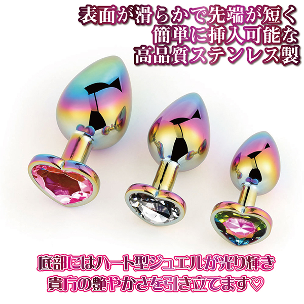 アナルのプレイにチョイス♪マルチカラーハートプラグハート形のアナルプラグです。高品質なステンレス製で表面は滑らかで先端が短いため、思いのほか簡単に挿入が楽しめます♪使用後は綺麗に洗浄でき、収納袋付きなので1つずつ収納することで、擦り傷などを防止できます。本品はジョークグッズとなります。その他の目的でご使用された際の責任等は一切負いかねますのでご了承ください。