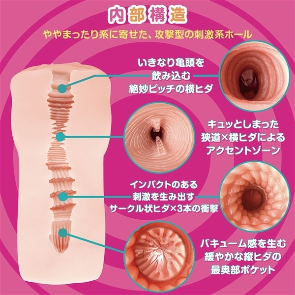 日本製最高品質のエラストマーを使用した非貫通オナホ「誘惑サーキュレーション」。挿入深度によってヒダの気持ちよさがどんどん変わる!ずっしり肉厚で迫力の410gが織りなす攻撃型の刺激系オナホとなっています♪伸縮性や耐久性も良く、2本の縦ヒダによる鋭いインパクトと3連続の太いリングヒダが亀頭を徹底的に刺激!魔性の搾精ヒダギミックが随所に散りばめられた内部構造とサークル状のヒダがたまらない!素材、硬度、内部構造、どれをとってもバランス良く造られたヒダ重視の非貫通オナホ♪魔性の淫惑ループを存分にお楽しみ下さい。ローション付。