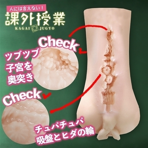 入口は感じて肥大したクリトリスを再現。まったりとしながらしっかり締め付ける大人の入り口を再現。挿入するとフジツボの様な吸盤突起が吸い付いてきます。手で強く握りながら動かすことで、気持ちいいバキューム感を味わえます。突起のイボとの相乗効果で気持ちのいいストローク。その先には優しく指で竿をしごかれるような感覚が味わえる2本のリングヒダ。スライドする度に気持ち良さがこみ上げます。最奥部には縦にびっしりと並んだ粒が亀頭全体を刺激してくれます。
