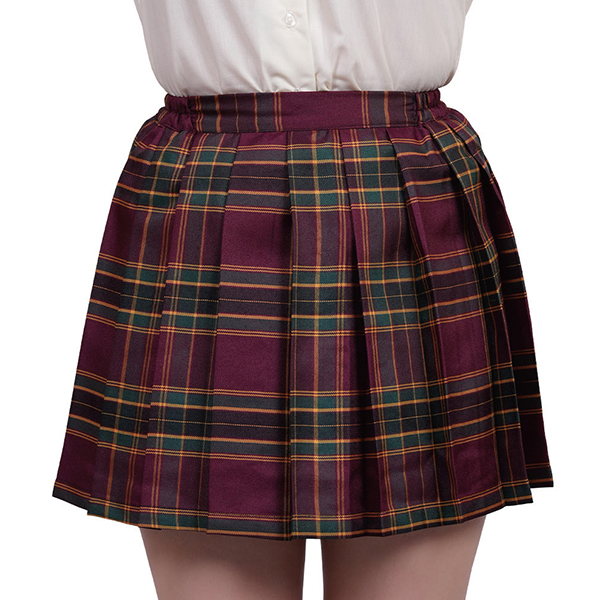 コーディネートしやすい人気のえんじとグリーンを基調としたプリーツスカート。