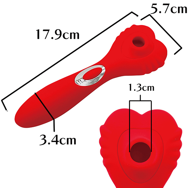 真っ赤なハート型の吸引とスティックバイブの「FEIWE(フェイウェン)」の登場です。スベスベのソフトタイプシリコンで、肌触り抜群。ハート型の吸引部は、吸い付き感のある強力吸引系振動。スティック側も強力振動。体稼働もW稼働も可能です。振動タイプは、両側共に10パターン。コンパクトで使いやすい高機能タイプです。