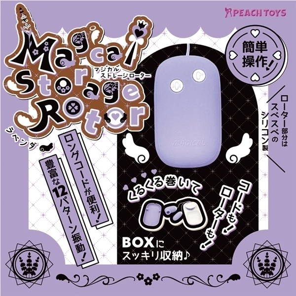 コードも!本体も!BOXにスッキリ収納♪ダブルローター!Magical Storage Rotor♪マジカルストレージローターの登場!70cmのロングコードが便利で使いやすい!豊富な12パターン振動!ボタンを押すだけの簡単操作!ローター部分はスベスベのシリコン製。ダブルのローターは、独立ボタンで、シングル使用もダブル使用も可能。くるくると巻いてコードも、ローターもBOXにスッキリ収納できちゃいます!●カラー:ラベンダー