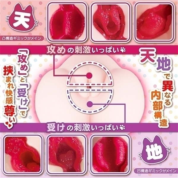 「やわらか」ボディで「かちかち」ヴァ○ナ!ちょっと珍しい<外はふわふわ・中はキツキツ>のオナホールなのです。まずはレアなホワイト素材を使用してロ○らしい「色白美肌」の外観に。そして、お腹は「ぽっこりイカ腹」、局部はちっこい「とじ○ン」とキュートな造型です。内部構造は「かちかちヴァ○ナ」を最大限に愉しんでいただくために上部は凸構造、下部は凹構造で構成し「ぴったり挟みこむ」仕様となっています。