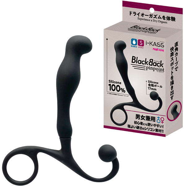 尻にいいアイカスにブラックバックシリーズが新登場!ピンポイントは直角カーブのフックで自分のいいスポットを直で刺激できます。シリコン部全長140mm先端部が最大径の23mmとなり会陰ボールも搭載しています。女性の使用の場合にもシリコン素材なので初心者向き。ドライオーガズムを体験する第一歩を!!
