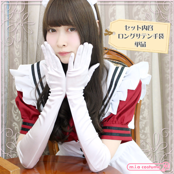 プリンセスドレス、メイド服、チャイナドレスなどのコスプレやワンピースにも合わせられるロング手袋(白)。サテン生地なので高級感もUP!きちんと手にフィットし、着け心地もとってもいい感じです!長さは肘上くらいになります。※水洗い可、塩素系漂白剤による漂白不可、ドライクリーニング可。※こちらの商品は在庫の状況によりお届けまでに4日〜7日程度かかる場合がございます。