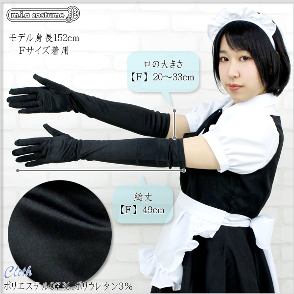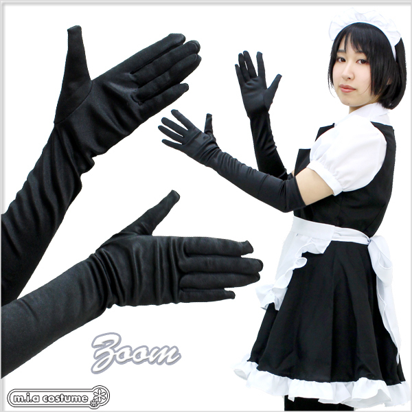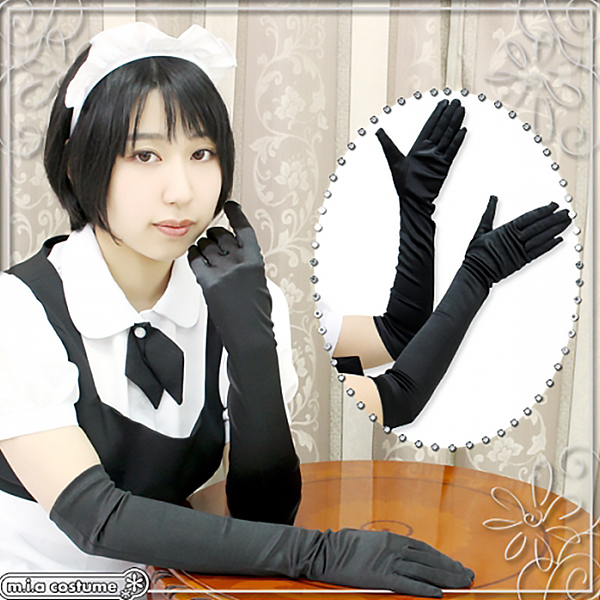 プリンセスドレス、メイド服、チャイナドレスなどのコスプレやワンピースにも合わせられるロング手袋(黒)。サテン生地なので高級感もUP!きちんと手にフィットし、着け心地もとってもいい感じです!長さは肘上くらいになります。手袋は意外と重宝するもの!他のコスプレとも相性は抜群です。※水洗い可、塩素系漂白剤による漂白不可、ドライクリーニング可。※こちらの商品は在庫の状況によりお届けまでに4日〜7日程度かかる場合がございます。