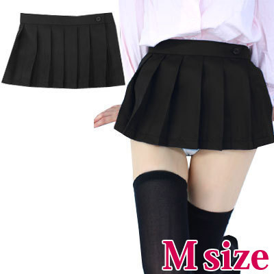 本格的な女子高生コスプレ!超ミニ丈の無地プリーツスカート(黒)。制服コスチュームには欠かせない定番のプリーツスカートですが、この絶妙なスカート丈はなかなか無い逸品です!見せパンと併せれば可愛さも倍増!※水洗い不可、塩素系漂白剤による漂白不可、アイロンは中温で当て布使用、ドライクリーニング可、色落ちの可能性があります。※こちらの商品は在庫の状況によりお届けまでに4日〜7日程度かかる場合がございます。