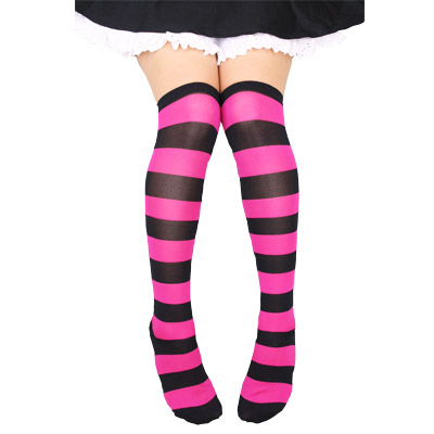 コスチュームのアクセントに!ピンク×ブラックのボーダーニーソ。3cm幅の太めボーダーがとってもキュート!コスプレ衣装はもちろん、私服にもコーディネート出来ちゃうスグレモノ!ヘビロテ確実のニーハイソックスです。※体型により着用しづらい可能性がございます、水洗い可、塩素系漂白剤による漂白不可、アイロンは中温で当て布使用、ドライクリーニング可。※こちらの商品は在庫の状況によりお届けまでに4日〜7日程度かかる場合がございます。