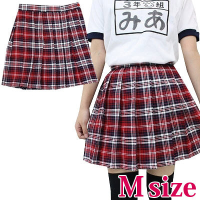 制服コスプレの定番アイテム!レッド×ホワイトのチェック柄プリーツスカート。ウエスト部分は、ボタン留め仕様!チェック×プリーツの最強タッグで、可愛らしさをアピール出来ちゃう、スクール制服コスチュームです。※水洗い不可、塩素系漂白剤による漂白不可、アイロンは中温で当て布使用、ドライクリーニング可、色落ちの可能性があります。※こちらの商品は在庫の状況によりお届けまでに4日〜7日程度かかる場合がございます。