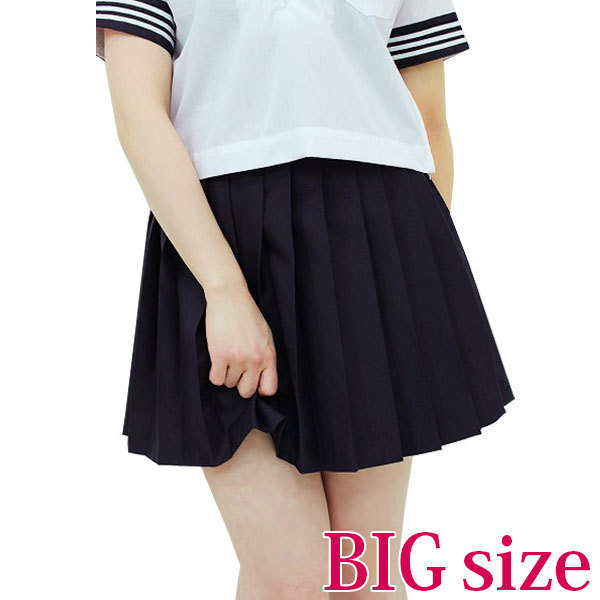 女子校生の定番アイテム!制服コスプレに欠かせない無地のプリーツスカート単品(BIG)。様々なトップスとあわせやすいネイビーカラーの制服スカートは、一着持っていると何かと便利なコスプレアイテム。白シャツで涼しげに!ピンクシャツで可愛く!もちろん、セーラーブラウスとも相性抜群です。※水洗い不可、塩素系漂白剤による漂白不可、アイロンは中温で当て布使用、ドライクリーニング可※こちらの商品は在庫の状況によりお届けまでに4日〜7日程度かかる場合がございます。